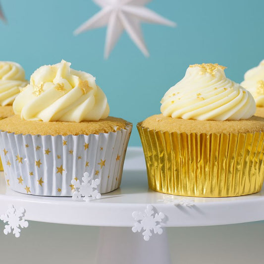 Formas p/ cupcakes douradas estre...