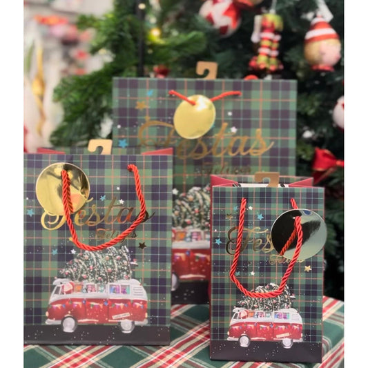 Saco médio de natal c/ árvores de...